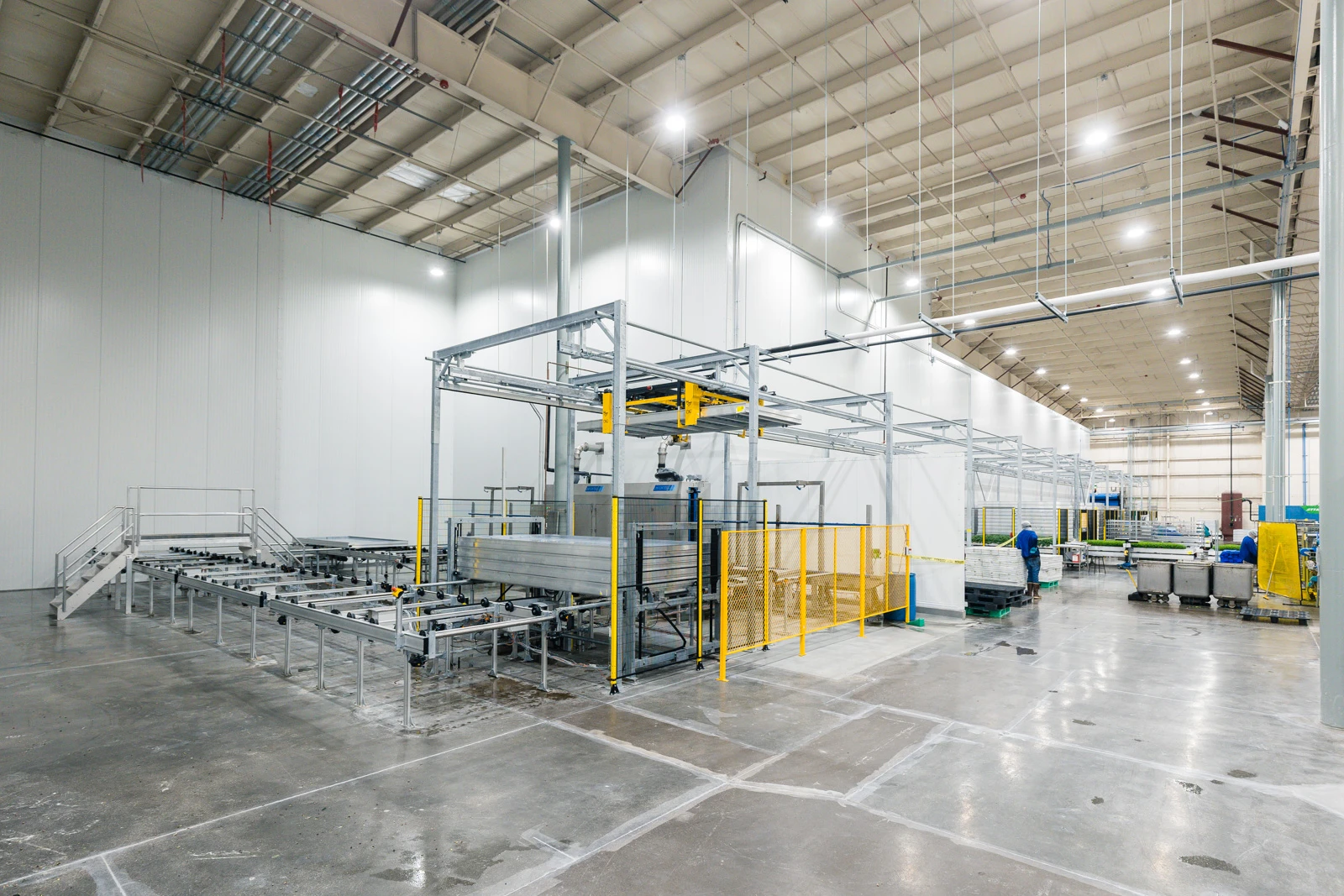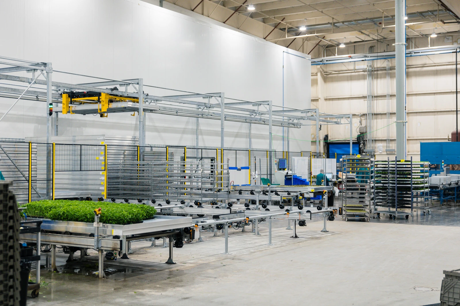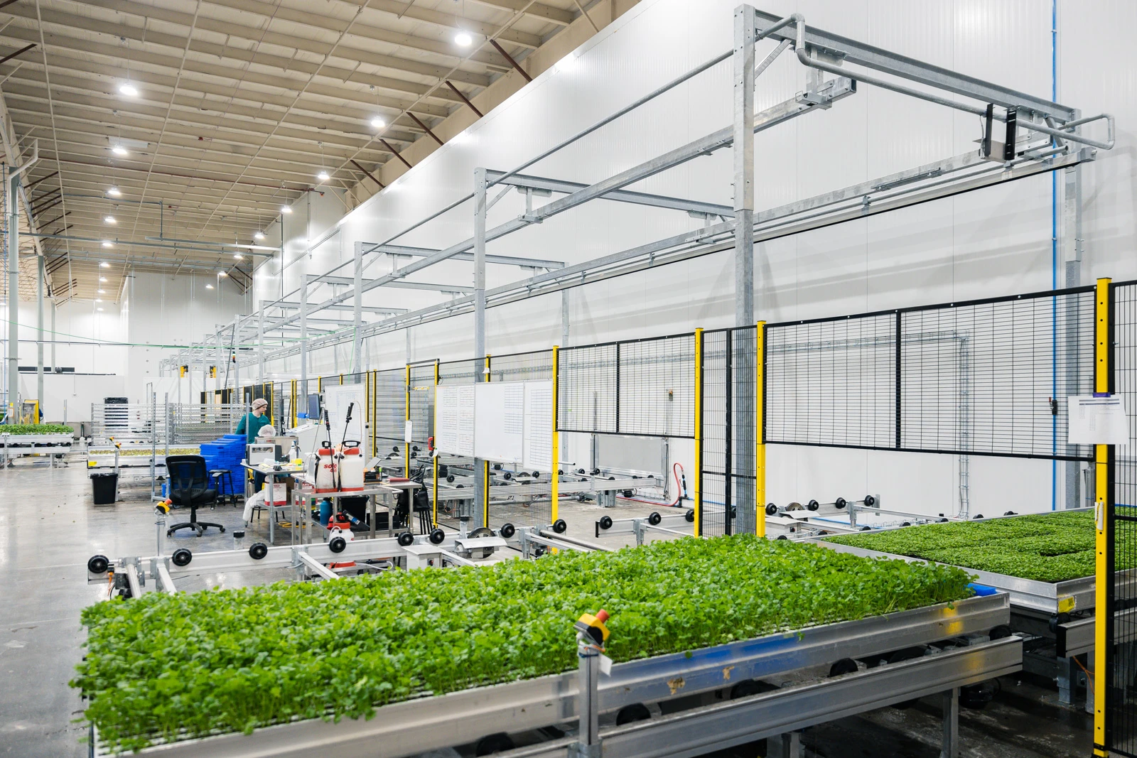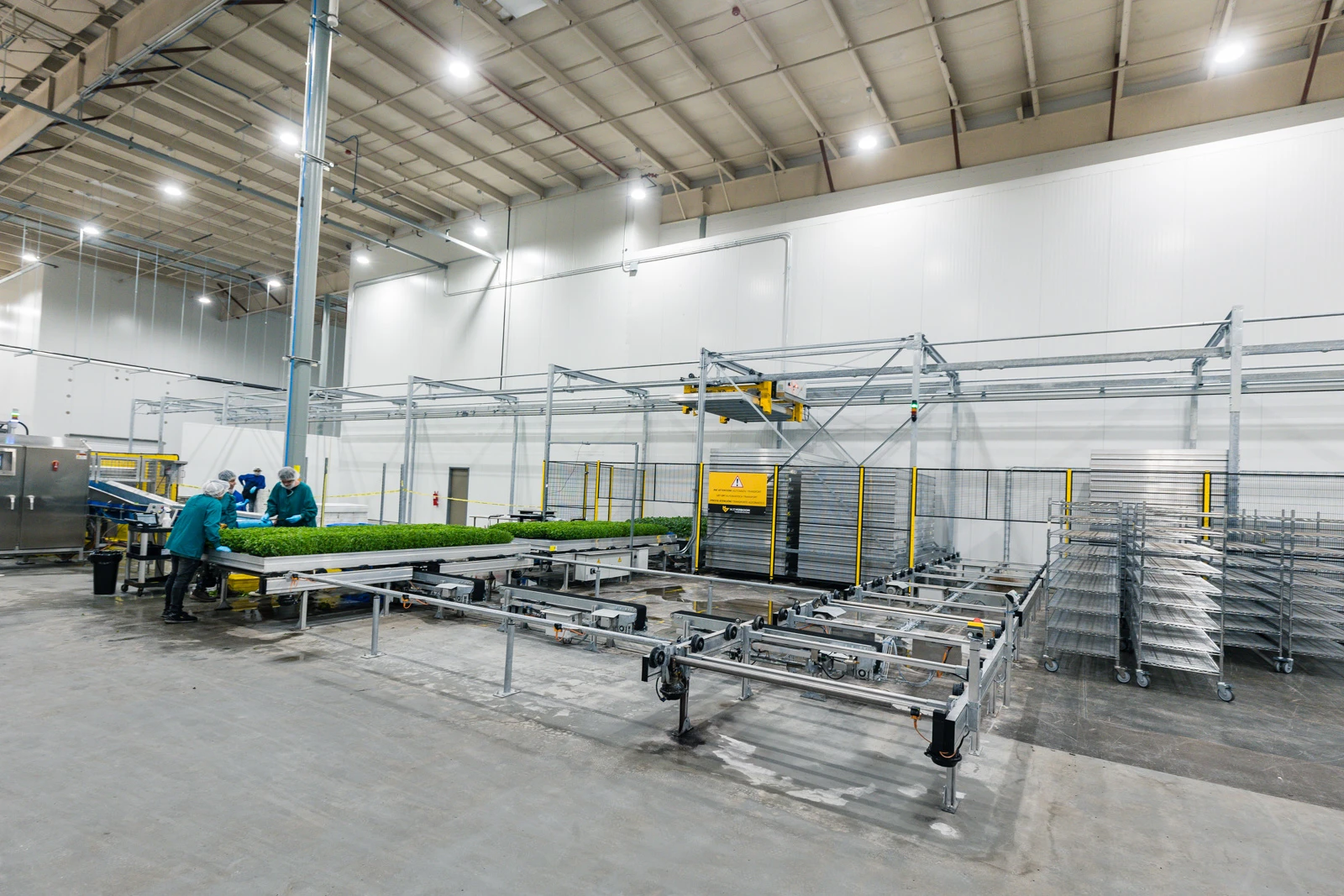 Wij hebben 80 Acres Farms voorzien van een geavanceerd meerlagensysteem met acht lagen en een totale teeltoppervlakte van 10.000 m² voor hun locatie in Florence, VS. Een belangrijk aspect van dit project is de volledige automatisering van alle logistieke bewegingen, waardoor werknemers veranderen in operators doordat de planten naar hen toe worden gebracht. Dit zorgt voor de veiligste en meest efficiënte werkstroom.
